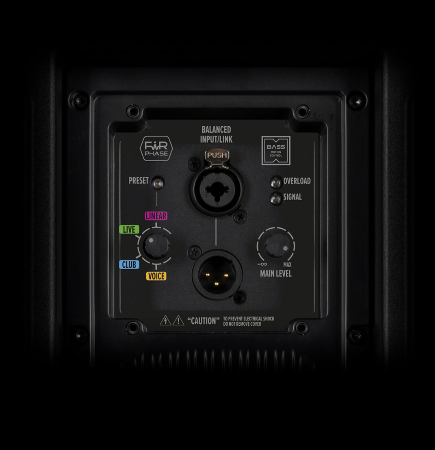Für den Tieftonbereich kommt ein leistungsstarker 12-Zoll-Woofer in einem bassreflexoptimierten Gehäuse zum Einsatz. Dieser liefert druckvolle, kontrollierte Bässe und sorgt für ein ausgewogenes Klangbild – auch bei höheren Lautstärken. Angetrieben wird das System von einem integrierten 3500-Watt-Class-D-Verstärker mit hochwertigem DSP, der eine maximale Lautstärke von 132 dB SPL ermöglicht.